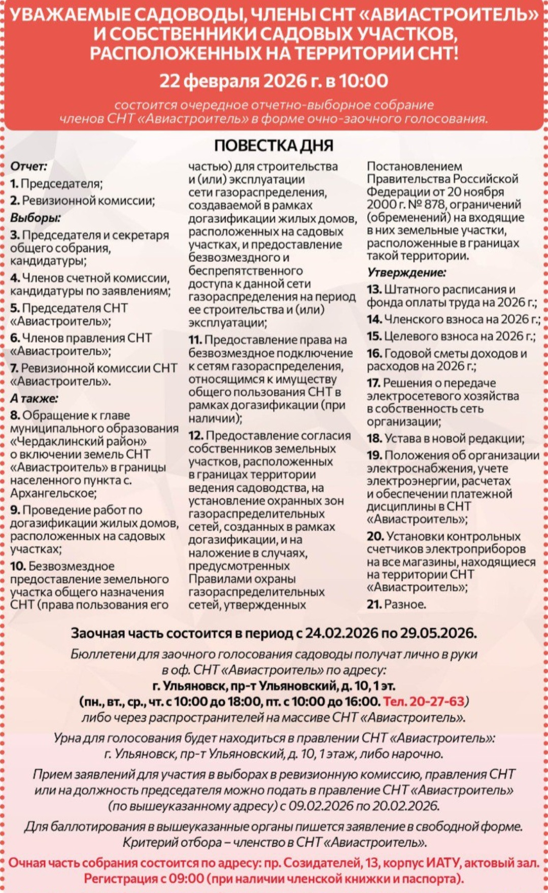 Уважаемые садоводы! с 01.11.2025 г по 31.03.2026 г меняется режим работы офиса СНТ " Авиастроитель" в зимний период