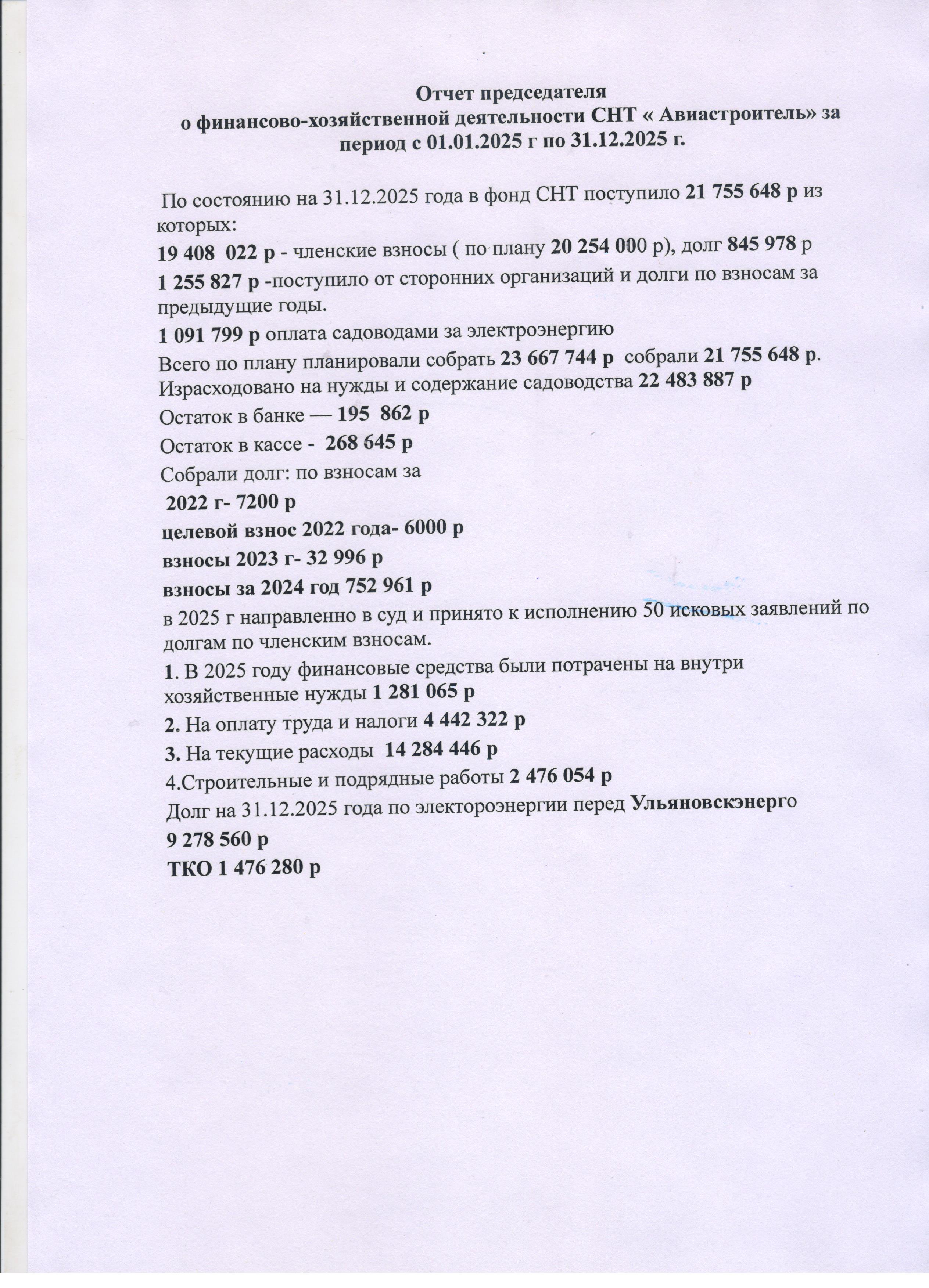 Отчет председателя
